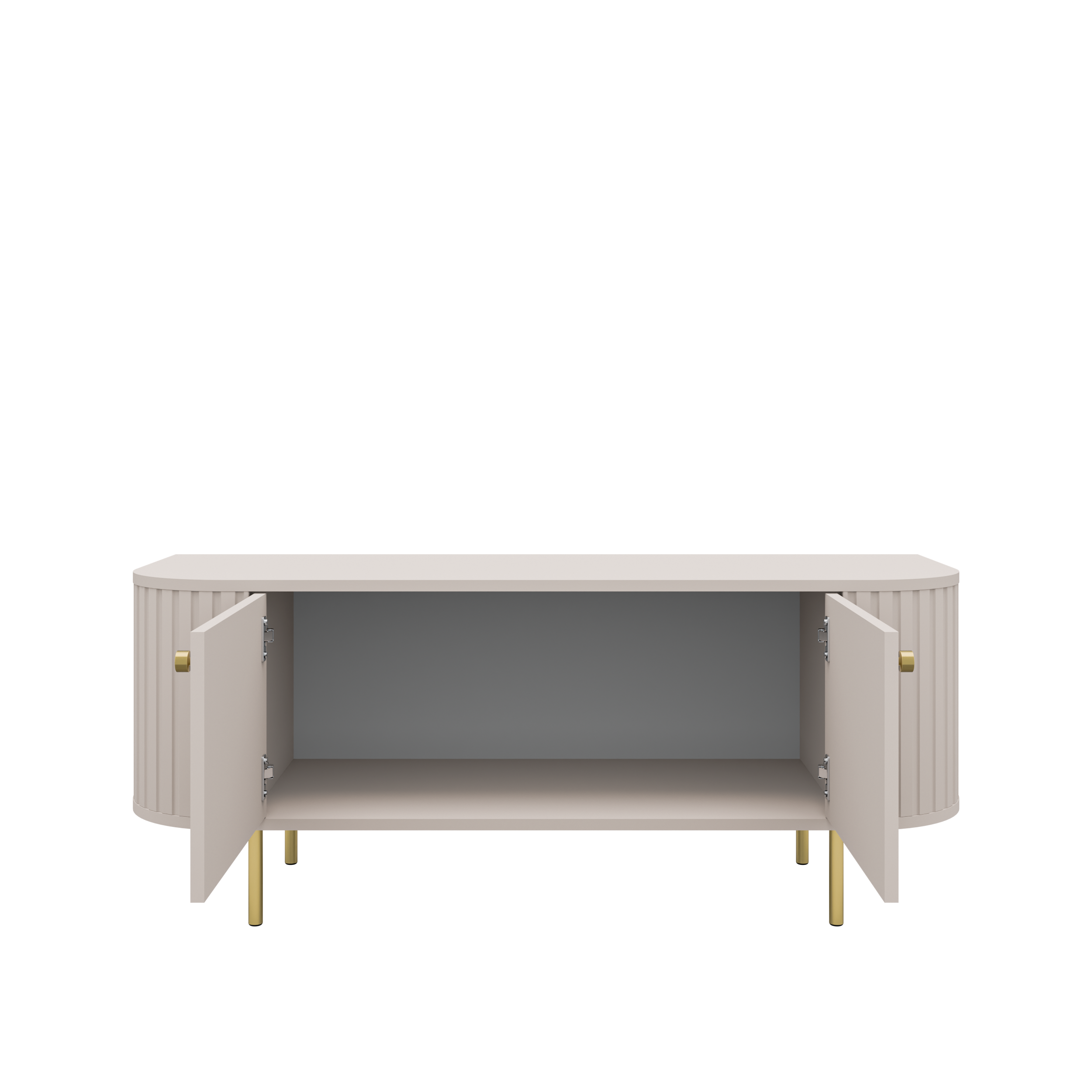 SZAFKA RTV OVELLA 2D - BEŻ PIASKOWY / ZŁOTY