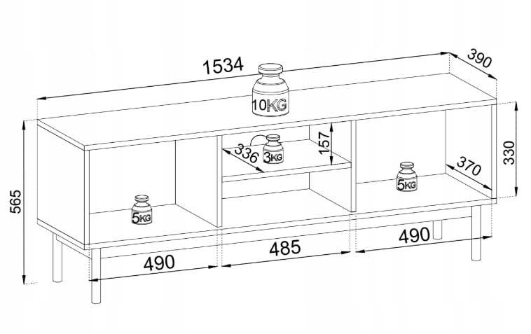 - Wysokość półek: 33 cm