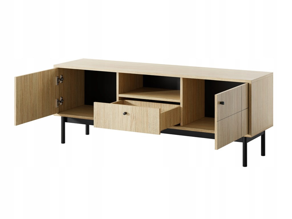 Szafka RTV OLMA 154 x 56 x 39 cm meble do salonu w stylu japandi, dąb linea