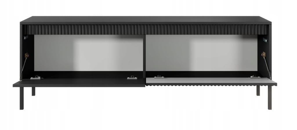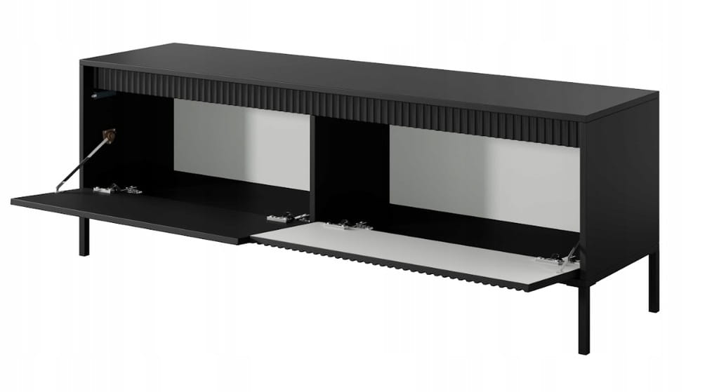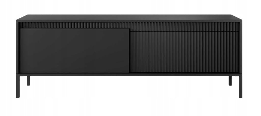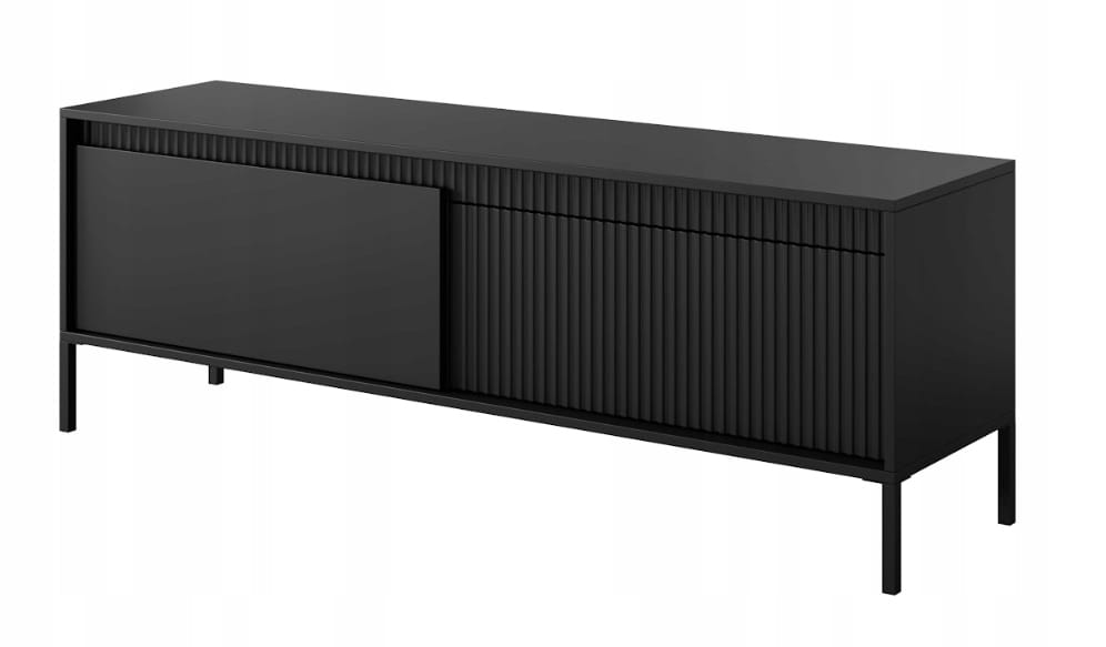 Szafka RTV SESSY 150 x 50 cm meble do salonu, pod TV, ryflowany front czerń