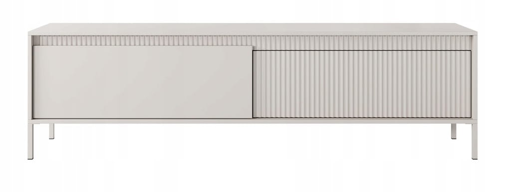 Szafka RTV SESSY 190 x 50 cm meble do salonu, pod TV, ryflowany front beż