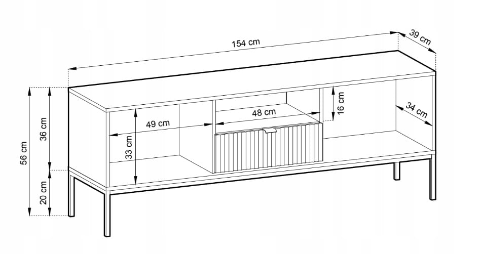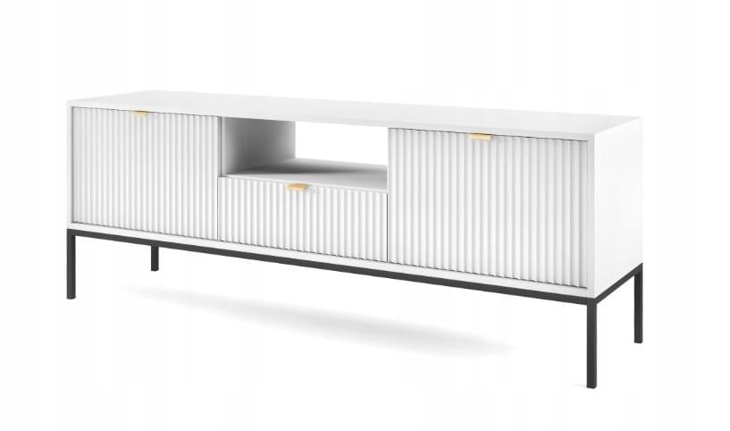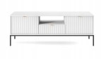 SZAFKA RTV ZANZI 154 x 56 x 39 cm do salonu, lamele BIAŁY / CZARNY STELAŻ