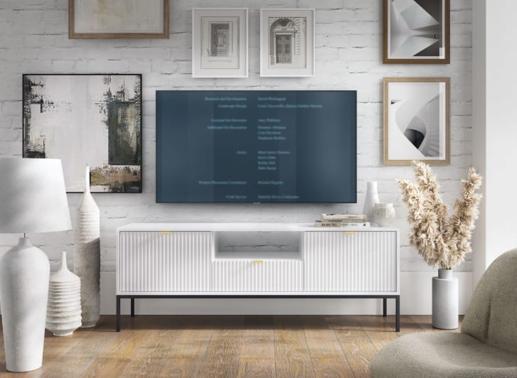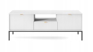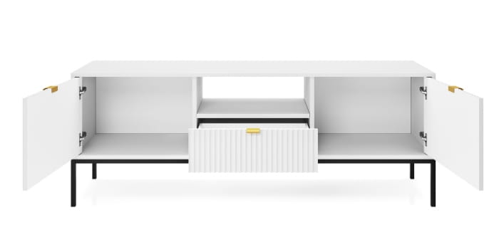 Szafka RTV 2D z szufladą ZANZI sprawdzi się zarówno w nowoczesnych, jak i klasycznych wnętrzach, dodając im wyrafinowanego stylu. Dzięki frezowanym frontom mebel zyskuje dynamiczną strukturę, która odświeża wygląd wnętrza, nadając mu wyjątkowy charakter. Smukłe, wysokie nogi na stelażu nadają stolikowi kawowemu szyku a zarazem ułatwiają utrzymanie porządku.