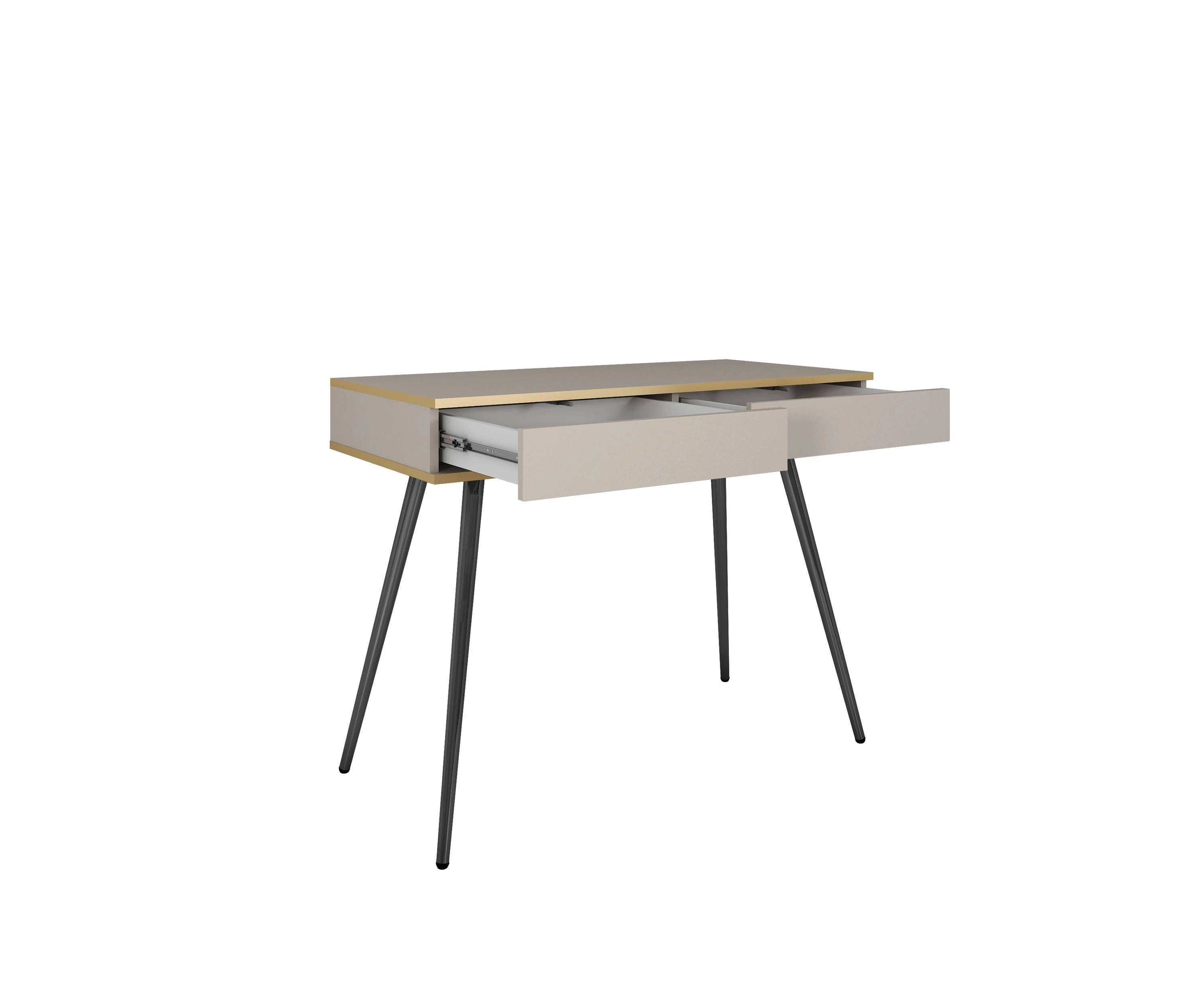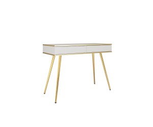 Toaletka 102 cm biała ze złotymi zdobieniami i złotymi nogami — 2 szuflady — Aurezzia