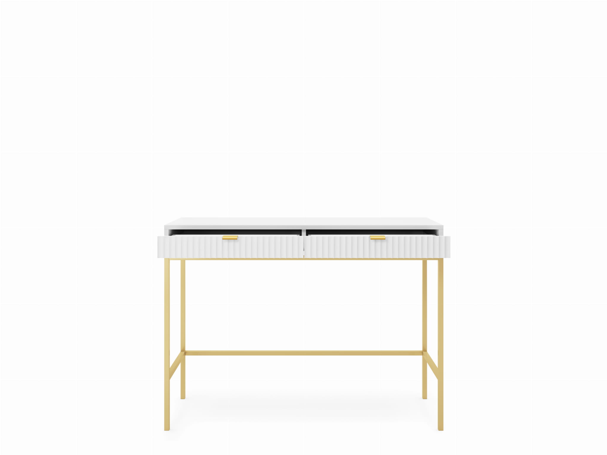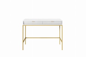 Toaletka stojąca ZANZI 104 x 77 x 50 cm dwie szuflady, lamele BIAŁY/ ZŁOTY STELAŻ