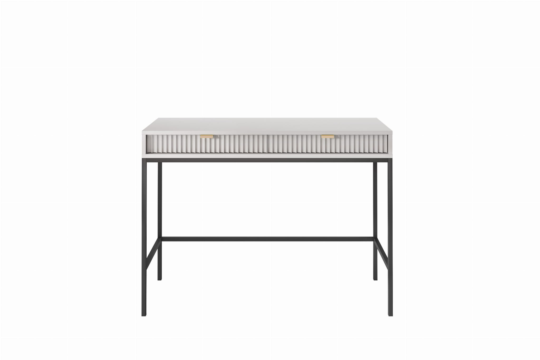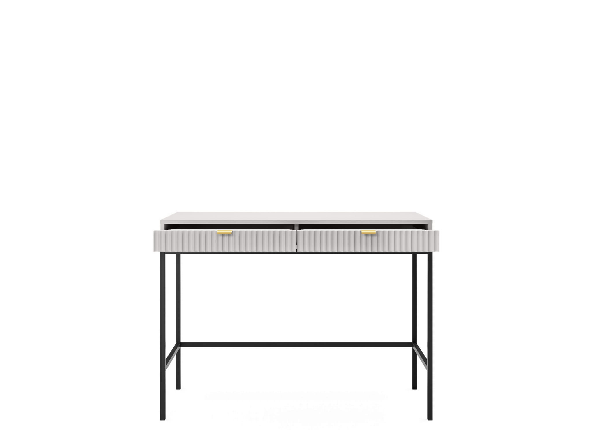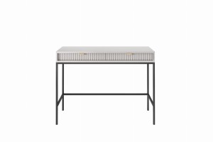Toaletka z szufladami ZANZI sprawdzi się zarówno w nowoczesnych, jak i klasycznych wnętrzach, dodając im wyrafinowanego stylu. Dzięki frezowanym frontom mebel zyskuje dynamiczną strukturę, która odświeża wygląd wnętrza, nadając mu wyjątkowy charakter. Smukłe, wysokie nogi na stelażu nadają toaletce szyku a zarazem ułatwiają utrzymanie porządku.