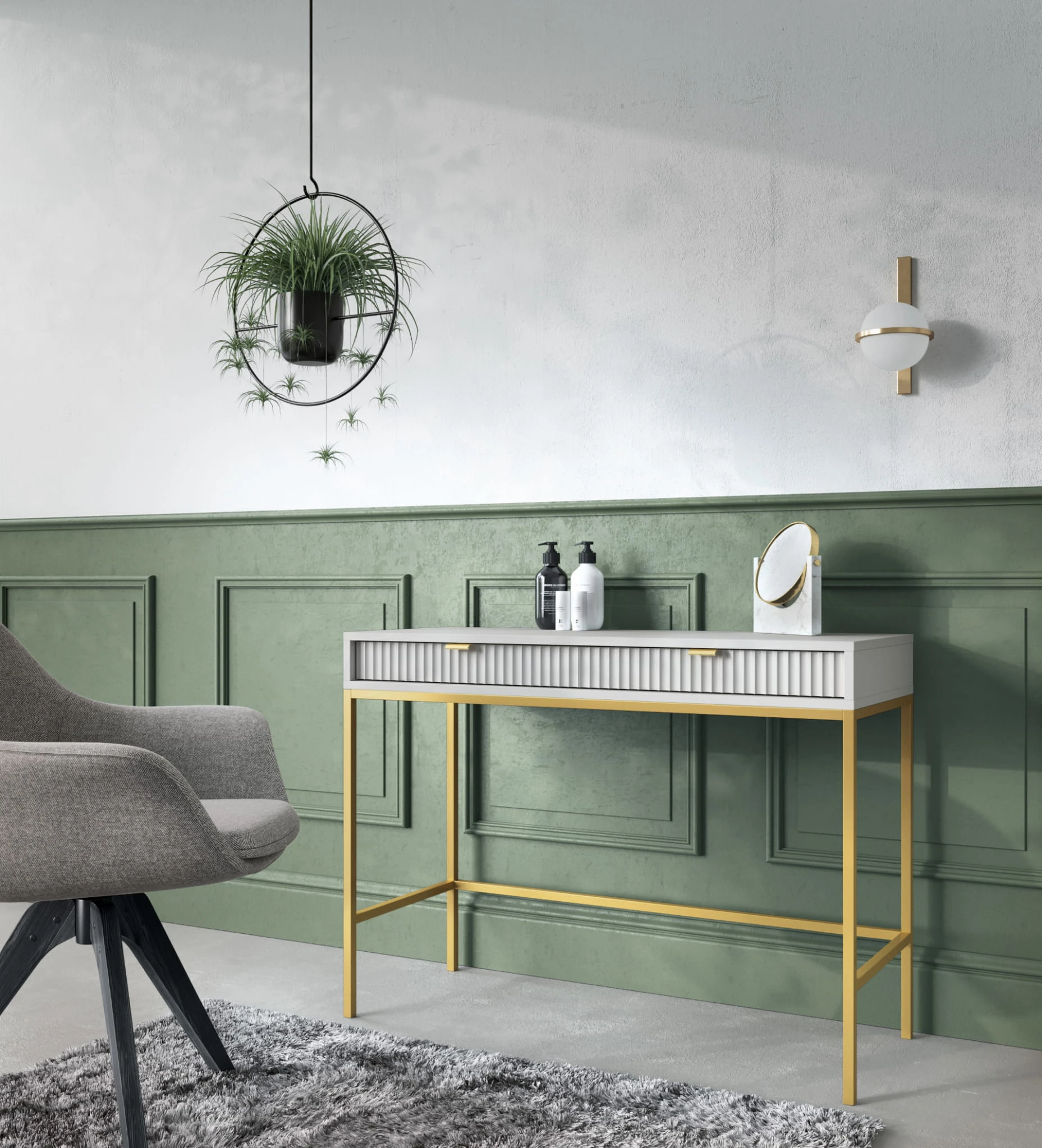 TOALETKA STOJĄCA Z SZUFLADAMI - SZARY / ZŁOTY STELAŻ