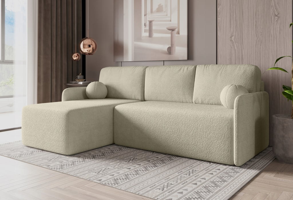 Uniwersalny Narożnik rozkładany ELSA z funkcją spania, jasny beż