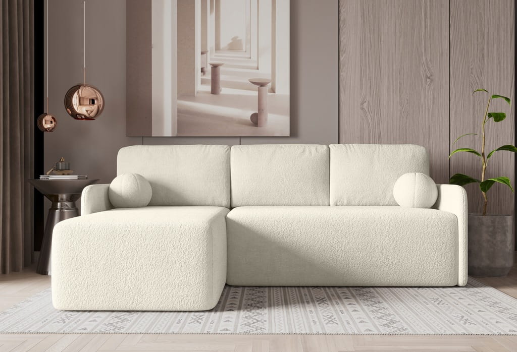 Uniwersalny Narożnik rozkładany ELSA z funkcją spania, śnieżna biel