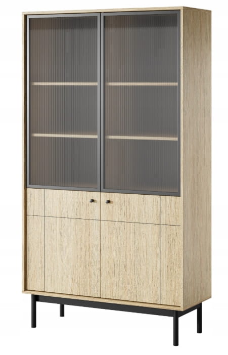 Witryna 2D OLMA 104 x 184 x 39cm meble do salonu w stylu japandi, dąb linea