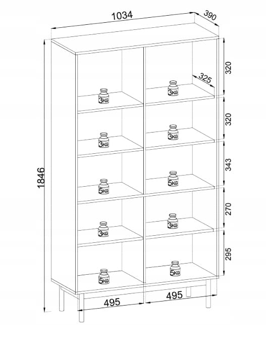 - Szerokość półek: 49,5cm