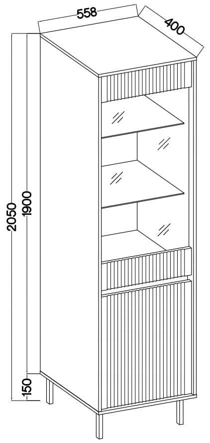 Posiada ryflowane fronty (lamele) co dodaje jej subtelnej struktury, tworząc wyjątkowy efekt wizualny, który przyciąga uwagę. Witryna idealnie wpiszę się zarówno w nowoczesne, jak i klasyczne aranżacje.