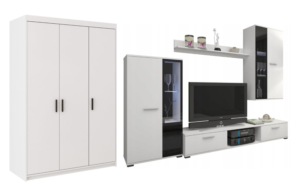 Zestaw mebli do salonu meblościanka + szafa KLARIO, biały