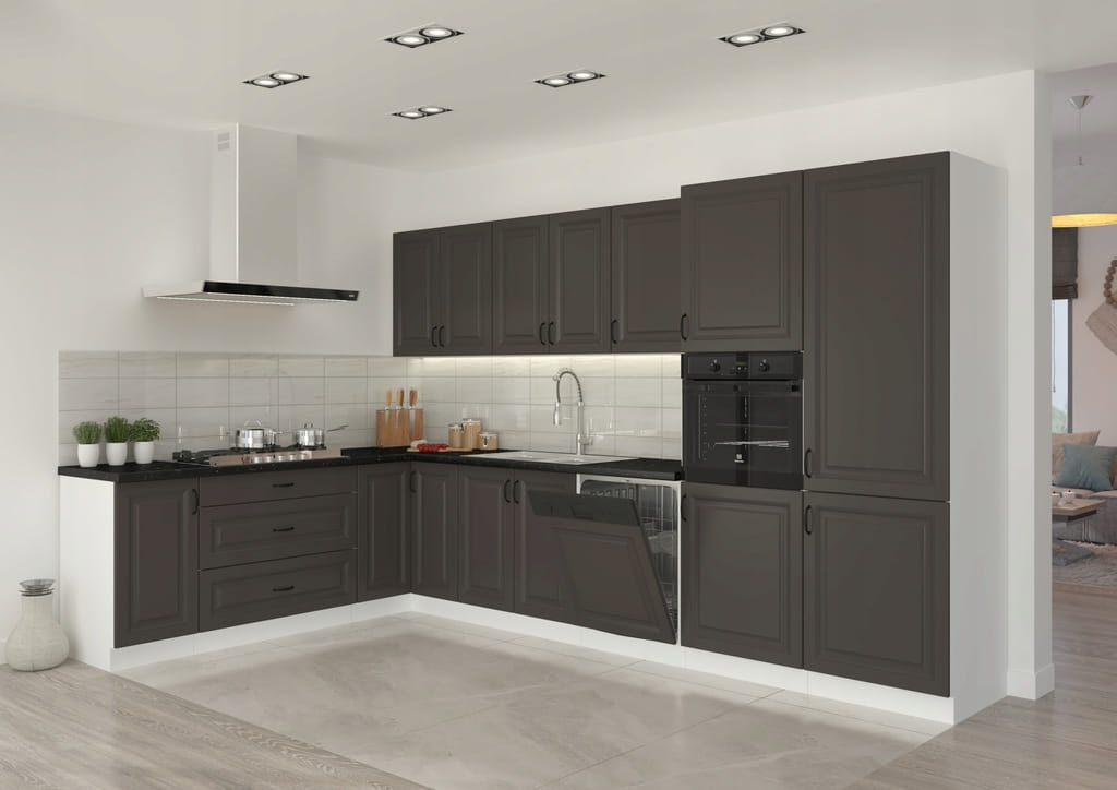 - Możliwość dowolnej konfiguracji szafek górnych i dolnych dzięki której dopasujesz kuchnie pod swoje potrzeby. Posiadamy szeroki wybór bo aż ponad 50 różnych szafek, z których na pewno uda Wam się stworzyć Waszą wymarzoną kuchnię.