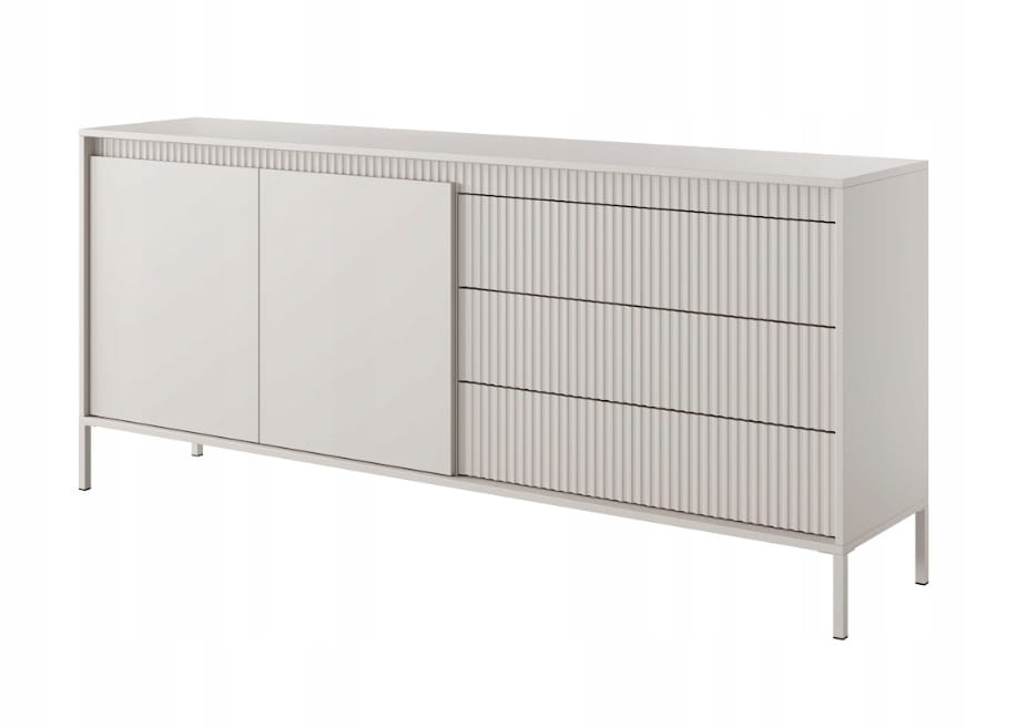 ✅ Nowoczesny Design: Prosta bryła podkreślona subtelnymi żłobieniami na frontach nadaje meblowi elegancji i czyni go jeszcze ciekawszym.