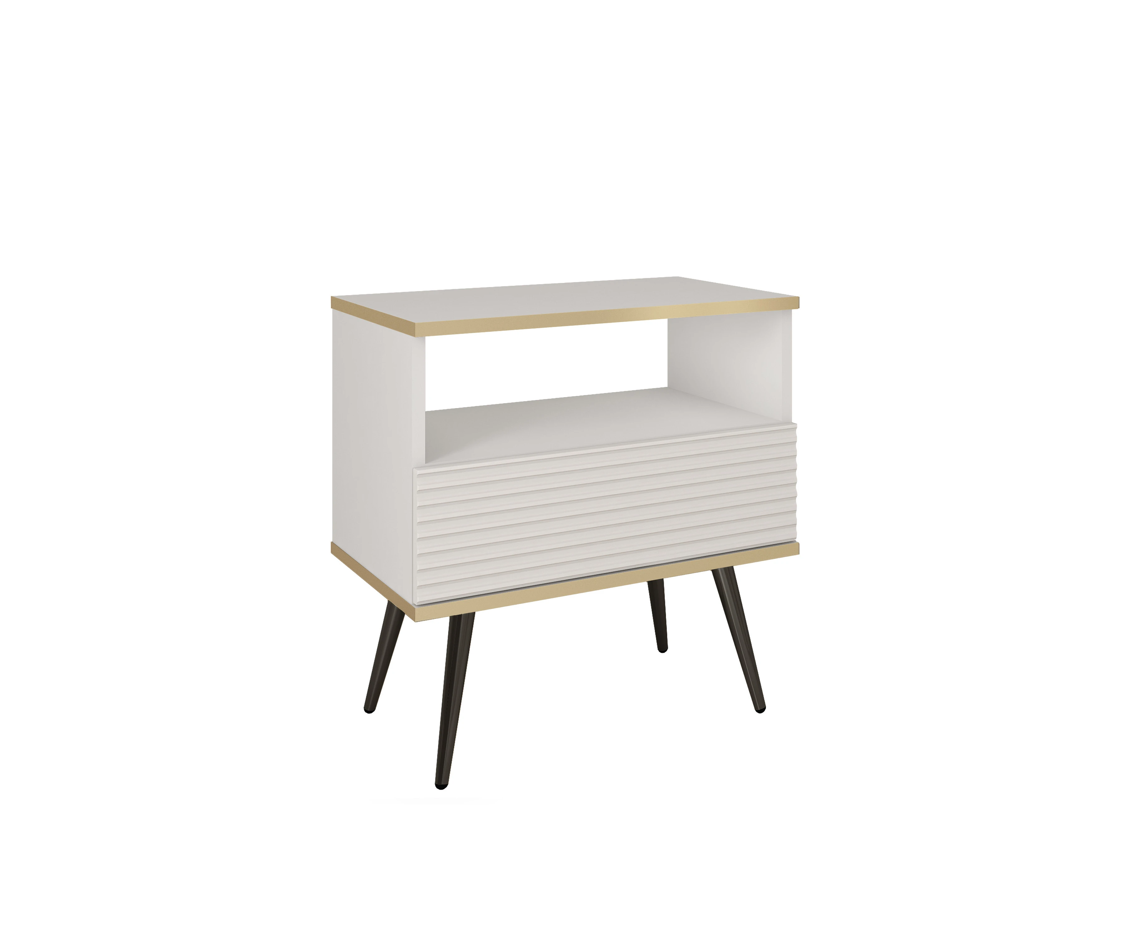 Szafka nocna biała z ryflowanym frontem MDF i czarnymi nogami — Aurezzia MDF