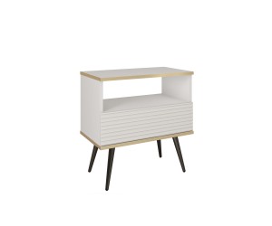 Szafka nocna 54 cm Aurezzia biała z ryflowanym frontem MDF i czarnymi nogami