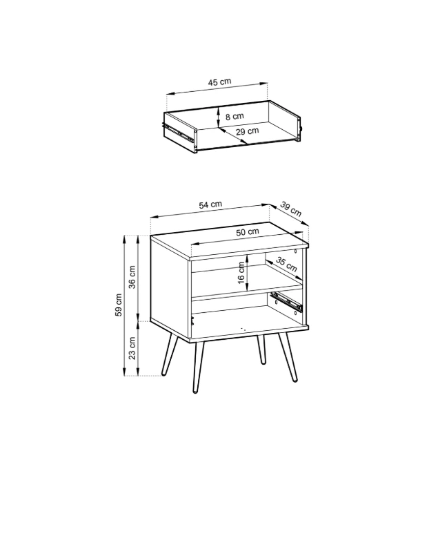 1 szuflada + 1 otwarta półka