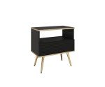 Szafka nocna 54 cm Aurezzia czarna z ryflowanym frontem MDF i złotymi nogami